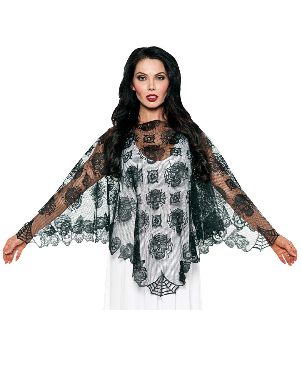 Lieferumfang: 1x Day of the Dead Poncho mit Spitze