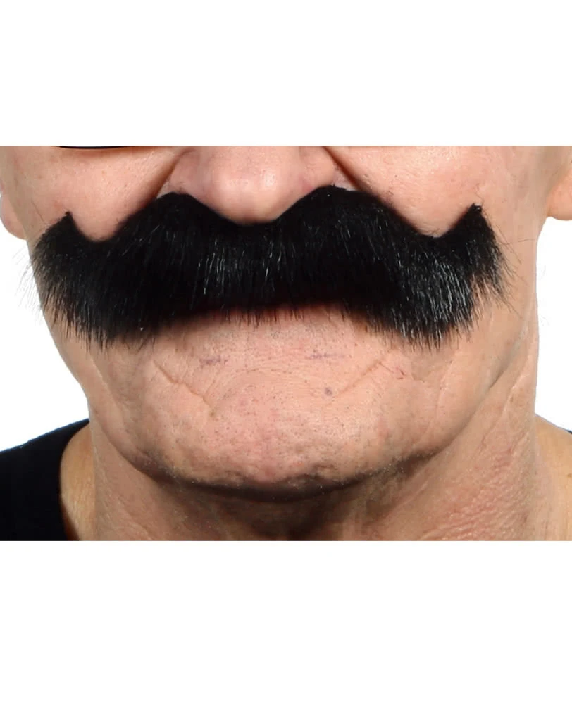 Der Friedrich Wilhelm Schnauzer Schwarz wird ganz einfach mit der auf der Rückseite angebrachten medizinischen Pflasterfolie auf die Haut geklebt. Die im Allgemeinen sehr gut verträgliche Pflasterfolie sorgt bei deinem imperialen Oberlippenbart für einen guten Halt. Der sehr realistisch wirkende Schnauzbart aus weichem und sehr dichten Kunsthaar lässt sich immer wieder verwenden mit doppelseitigem Pflaster oder Mastix Hautkleber klein. Du kannst den dominanten Knebelbart beliebig mit Wasser oder Haarwachs stylen und mit einer Schere zuschneiden. Bestell dir jetzt den grandios aussehenden falschen Friedrich Wilhelm Schnauzer in schwarz zum Aufkleben.