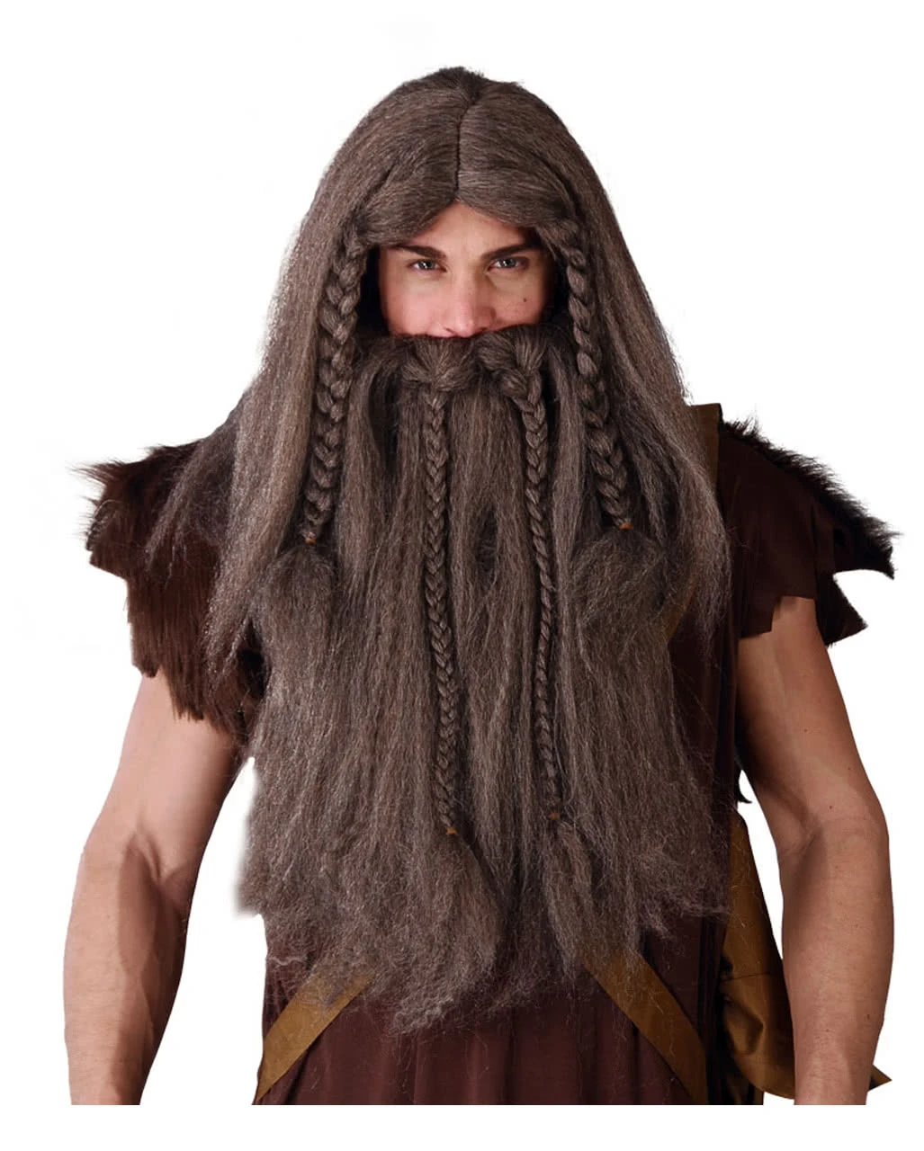 Grau-braune Wikinger Perücke-Bart Kombination