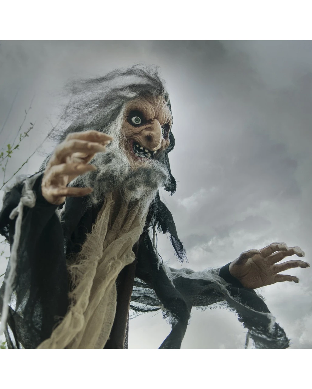 Gruselige Hexe mit Leuchtaugen, Bewegung und Sound