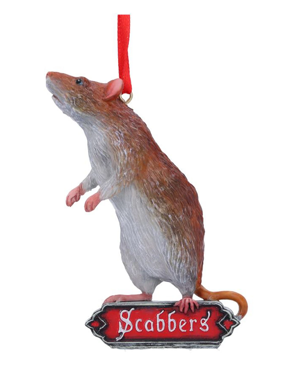 Die Harry Potter Scabbers Christbaumkugel ist ein originelles Deko Ornament für en Weihnachtsbaum oder dein Zimmer. Der Rons Ratte Scabbers Anhänger zeigt die niedliche Ratte, die Ron Weasley als Haustier begleitet. Echte Fans wissen ja, dass die Ratte eigentlich der böse Animagus Peter Pettigrew, ist, der dem dunklen Lord Voldemort dient. Hänge dir die Ratte an den Christbaum und schaue nach, ob morgens der dicke Peter unterm Baum sitzt. Oder verschenke den Anhänger an einer anderen neugierigen Fan.
