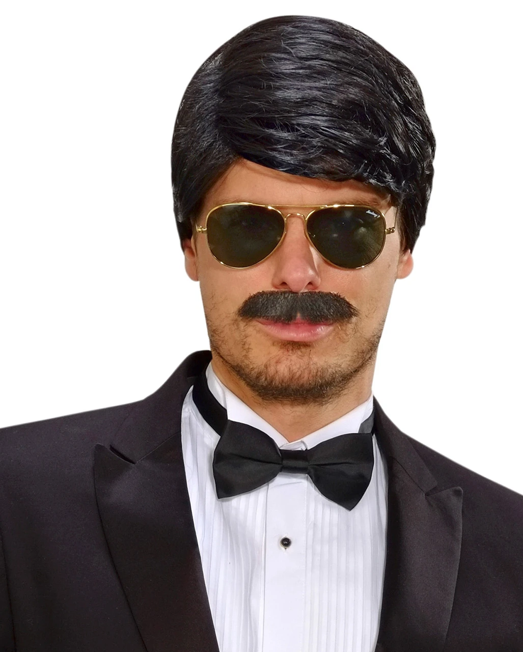 Schwarze Männerperücke mit Oberlippenbart als Kostümzubehör