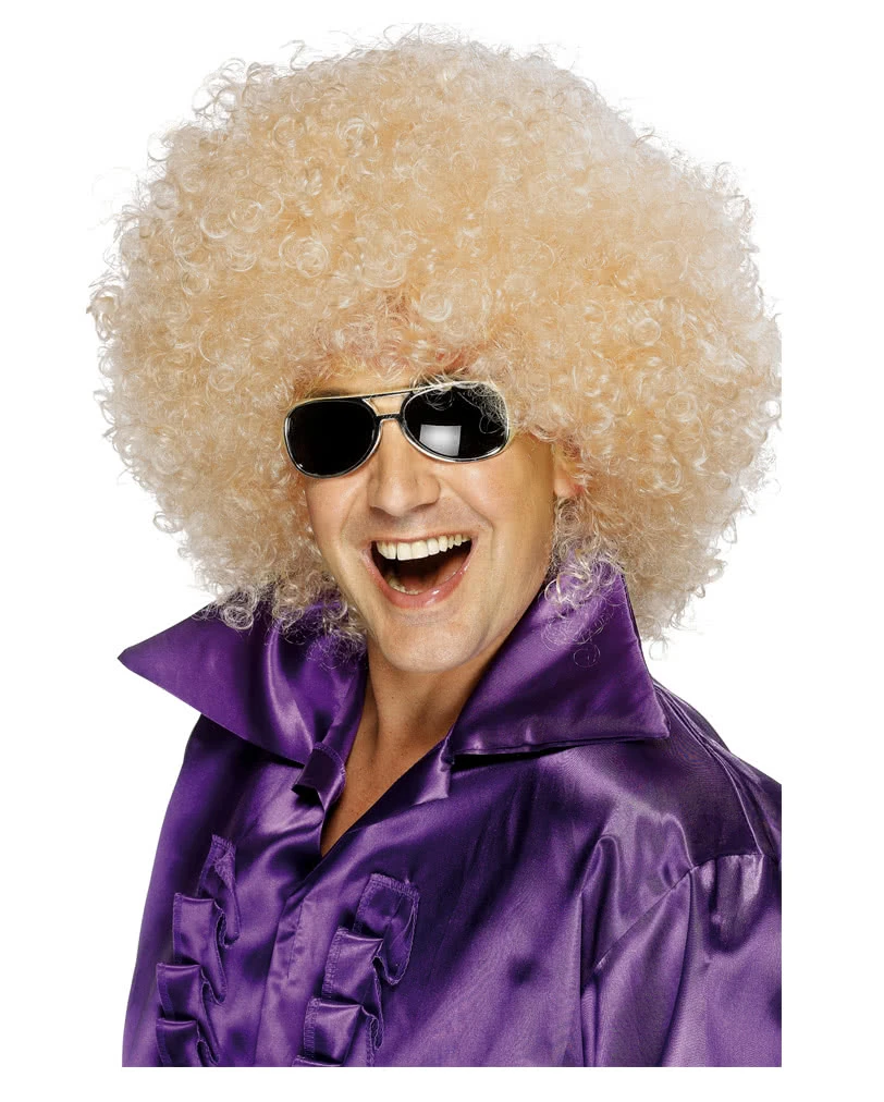 Die blonde Mega-Afro Perücke ist aus Kunsthaar und hat aufgeschüttelt und toupiert einen eindrucksvollen Durchmesser. Mit der Mega-Afro Perücke sorgst du bei Festivals, Junggesellenabschied und Faschingsbällen für einen riesen Spaß.