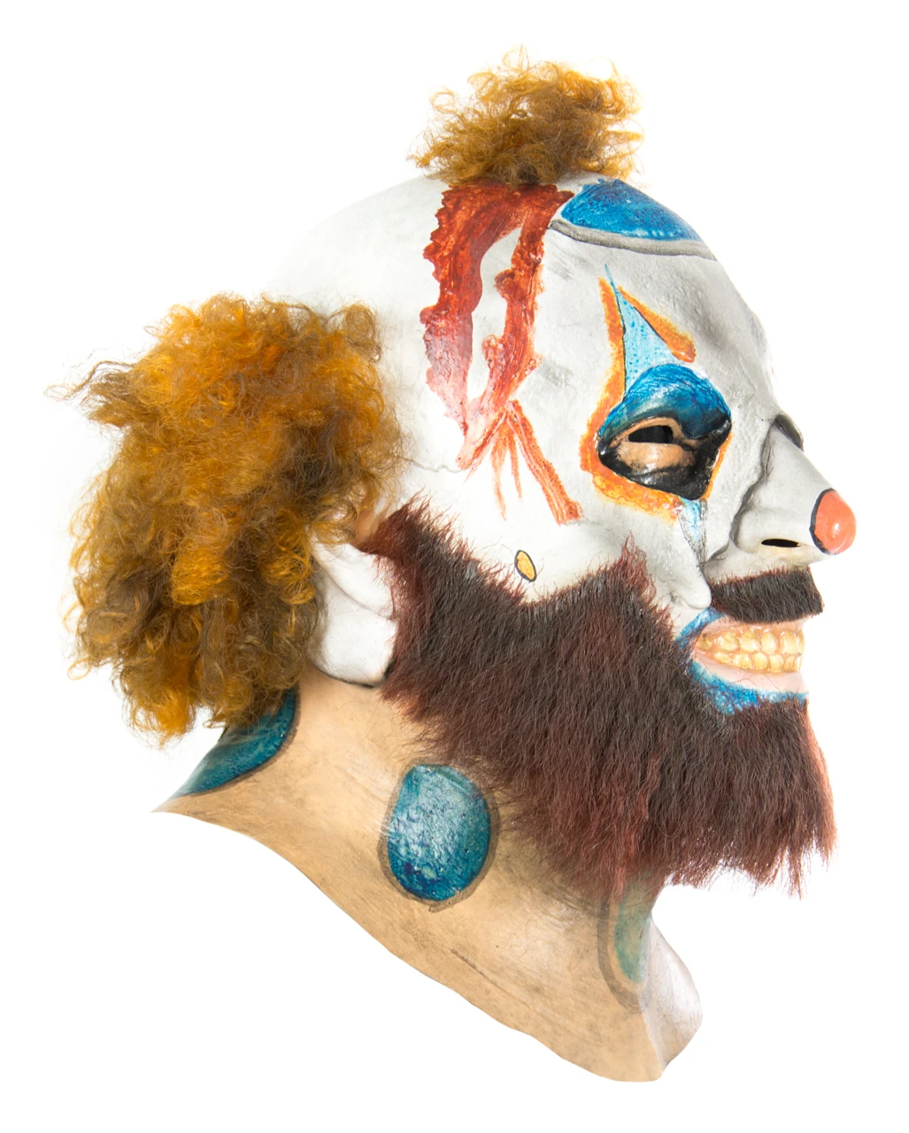 Die original lizenzierte Schitzo Maske aus Rob Zombies „31“ entspricht bis ins Detail der Filmvorlage. Die Halloween-Maske zeigt den verwahrlosten Killerclown aus dem Film „31“ mit orange-braun-farbenen Locken samt Halbglatze und versifftem Vollbart. Verwaschene Farben und ein wahrlich furchteinflößendes Grinsen auf dem Gesicht der Horrorclown-Vollmaske spiegeln die verstörende Stimmung des Horrorfilms von Rob Zombie treffend wider. Aussparungen in Augen, Nase, Mund und Ohren des „31“-Lizenzartikels lassen ausreichend Platz zum Sehen und Atmen. Dazu empfehlen wir den Horror Clown Baseballschläger und die Böser Clown Hände aus Latex.
